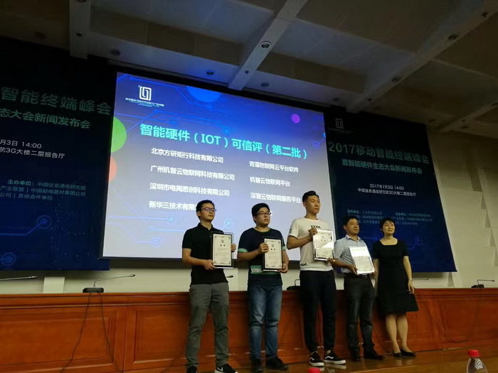 为了推进移动信息化的高速发展、确保移动信息产品与服务的标准化与规范化,会上还发布了“网络辅助北斗/GPS位置服务平台”的开放公测,并为通过智能硬件(IoT)可信评估与移动信息化可信选型评估的企业颁发证书。