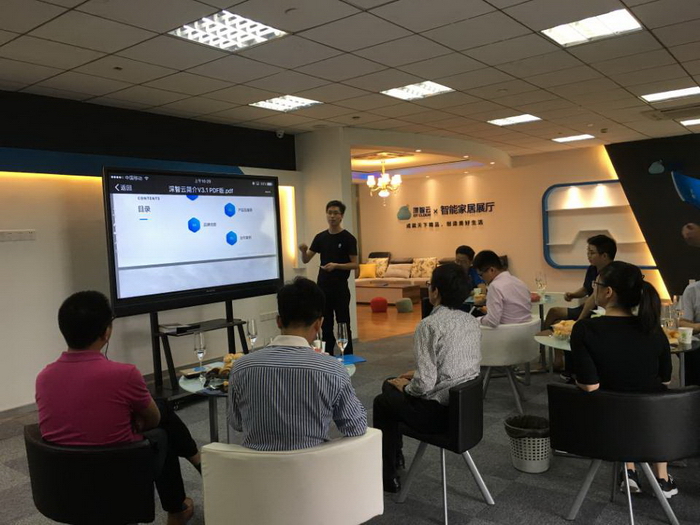 ▲深智云苏州子公司运营经理向来宾介绍深智云产品与服务。