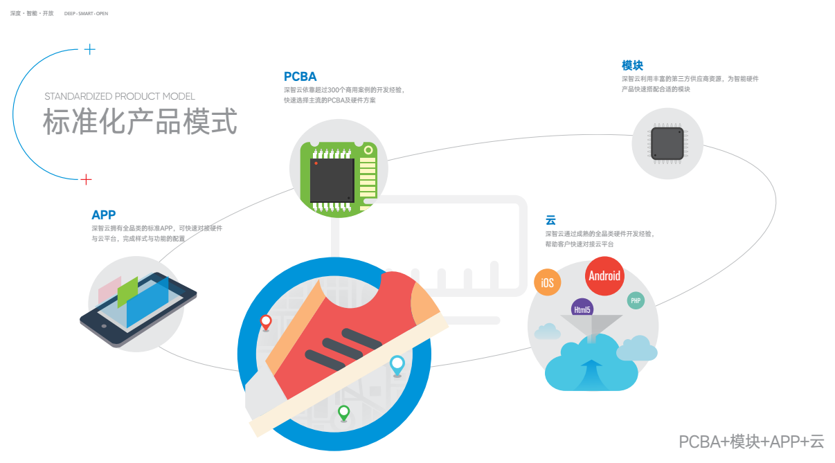 深智云在为300余家企业提供物联网服务的过程中,深入挖掘企业需求,准确把握传统厂商在物联网时代的发展痛点,依托超过100个品类的智能产品商用开发经验,推出深智云物联网标准化产品接入方案,帮助传统厂商快速进入物联网,迅速实现产品智能化,抢先一步完成物联网商业布局。“技术门槛高、开发周期长、研发成本大的”是不少传统厂商对智能产品开发的基本印象。深智云是如何实现智能产品的快速、稳定、高效的打造呢?