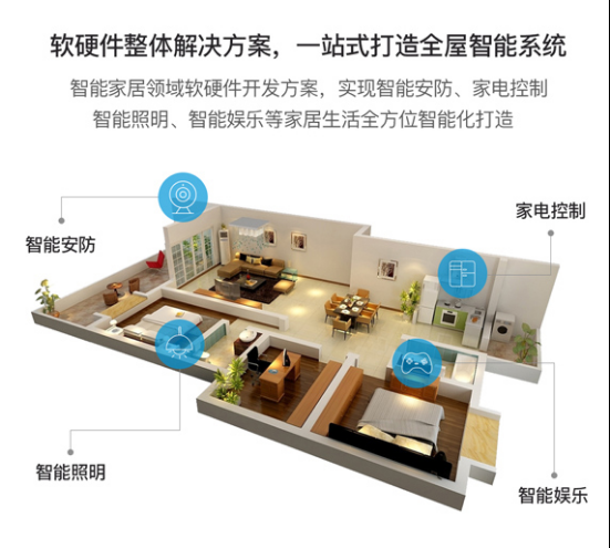 深智云智能家居解决方案,通过软硬件一站式开发方案,打造涵盖智能安防、智能家电控制、智能照明、智能娱乐等在内的全屋智能系统,快速简便实现智能家居生活的便捷性、舒适性、安全性与定制化。